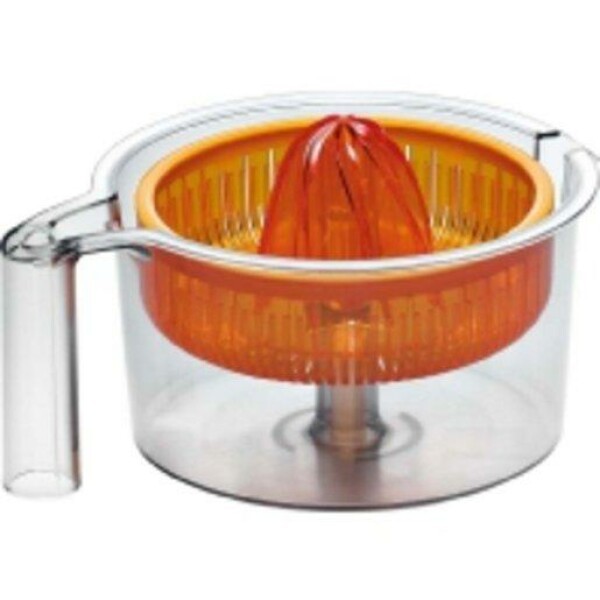 Zitruspresse transparent mit orangem Presskegel