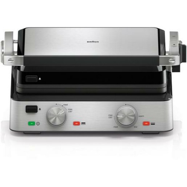 - 3-in-1-Garpositionen für maximale Vielseitigkeit - integrierte Heizelemente für eine gleichmäßige Erwärmung - 29 x 23 cm große Garflächen für bis zu 6 Personen - zwei unabhängige elektronische Temperaturregler - 2000 Watt Grillleistung - integrierte und abnehmbare Fettauffangschale - Platten sowie die Auffangschale sind spülmaschinenfest. Flexibilität für perfekte ErgebnisseEntdecke die grenzenlose Vielseitigkeit des Braun CG 7020 Multigrills! Mit seinen 3-in-1-Garpositionen - Kontakt-, Öffnungs- und Ofenposition - bietet dieser Multigrill eine unvergleichliche Flexibilität in der Zubereitung deiner Lieblingsgerichte. Egal ob du saftige Steaks, knusprige Paninis oder köstliche Gemüsespieße liebst, mit diesem Multigrill bist du für jede kulinarische Herausforderung gewappnet. Die integrierten Heizelemente des Braun CG 7020 Multigrills ermöglichen eine schnellere und gleichmäßigere Erwärmung der Platten. Dadurch sparst du wertvolle Zeit und erzielst immer perfekte Grillergebnisse. Die Wärme wird direkt auf die Platten übertragen, sodass du dich auf eine gleichmäßige Hitzeverteilung verlassen kannst. Power für bis zu 6 PersonenMit den großzügigen Garflächen von jeweils 29 x 23 cm kannst du problemlos Mahlzeiten für bis zu sechs Personen zubereiten. Egal ob du eine Familienfeier planst oder Freunde zum Grillen einlädst, mit diesem Multigrill wird jeder satt und glücklich. Und das Beste daran ist, dass du dank der zwei unabhängigen elektronischen Temperaturregler die Temperatur jeder Platte separat präzise regeln kannst. So kannst du ganz einfach zwei verschiedene Gerichte gleichzeitig bei unterschiedlichen Temperaturen zubereiten. Mit beeindruckenden 2000 Watt Grillleistung heizt der Braun CG 7020 Multigrill schnell auf und bietet dir die Power, die du für professionelle Grillergebnisse benötigst. Die Verriegelungsfunktion ermöglicht eine einfache Aufbewahrung und Reinigung. Du kannst den Multigrill platzsparend verstauen und ihn bei Bedarf schnell wieder hervorholen. Und damit du gesunde Mahlzeiten ohne überflüssiges Fett genießen kannst, verfügt der Multigrill über eine integrierte und abnehmbare Fettauffangschale. Überschüssiges Öl wird während des Kochens abgeleitet, sodass du dich auf gesunde und leckere Ergebnisse freuen kannst. Einfache ReinigungDie Reinigung des Braun CG 7020 Multigrills ist ebenfalls ein Kinderspiel. Alle Platten sowie die Auffangschale sind spülmaschinenfest. Du musst dich also nicht um lästiges Abwaschen kümmern, sondern kannst den Multigrill ganz einfach in die Spülmaschine geben. Der Kontaktgrill ist ein vielseitiges und leistungsstarkes Gerät, dass dir unzählige Möglichkeiten in der Küche eröffnet. Wage kulinarische Experimente, begeistere deine Gäste mit kreativen Grillkreationen und erlebe die Freude des gemeinsamen Kochens. Der Braun CG 7020 Multigrill - dein Partner für genussvolle Momente!