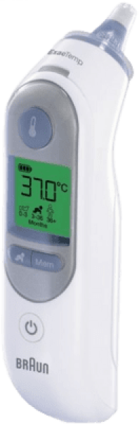 By selecting Braun ThermoScan 7, you are choosing the no.1 thermometer brand among doctors*. Thanks to its patented pre-warmed tip, Braun ThermoScan ear thermometers are already regarded as a benchmark for accuracy, and are widely used and endorsed by doctors around Europe. The tip on other thermometers can cool the area where the reading is taken, which can lead to inaccurate readings. The tip on the ThermoScan is warmed before use, to ensure professional accuracy. Plus, the ExacTemp guidance system confirms the correct position and accurate reading with a light and a beep. Now with new Age Precision technology Braun ThermoScan gives you even more reassurance when it comes to interpreting your child’s temperature. Discover all of the features of Braun ThermoScan 7 IRT6520.