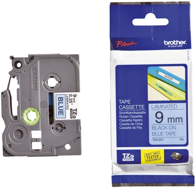 Brother SCHRIFT SCHWARZ / BAND BLAU (TZE521 PRÄGEBAND 9MM)
