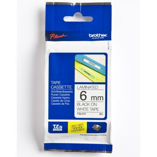 Compatible with a wide range of Brother’s P-touch printers, this genuine laminated TZe-211 labelling tape cassette is especially versatile thanks to its easy-to-read black and white colour – so it comes in useful around the home, office and in other workplaces.