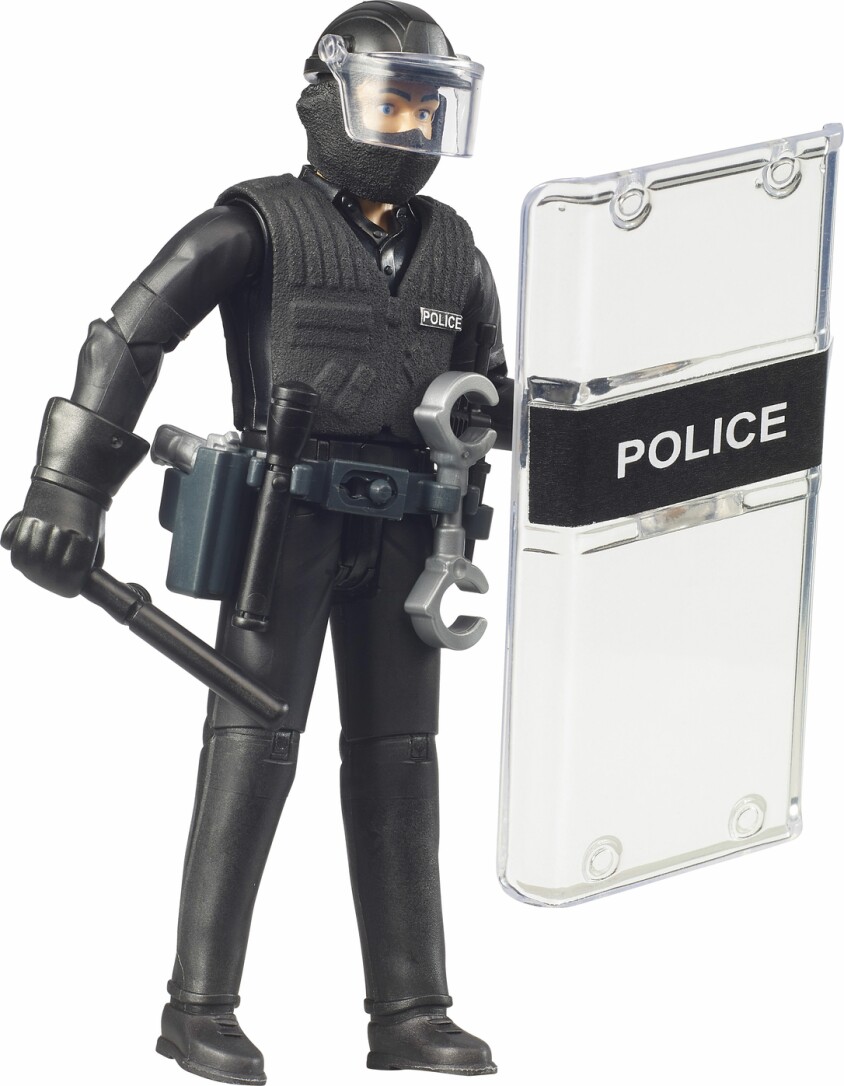 Wenn Polizei-Einsätze brenzlig werden, werden zur Verstärkung und Auflösung dieser Situationen die Police Special Forces gerufen. Diese Spezialeinheit verstärkt jetzt auch die Einsatzkräfte von BRUDER. Mit besonderer Ausrüstung, welche auch ein Schutzschild. Als Erweiterung zu diesem umfangreich ausgestatteten Polizisten passt die bworld Polizeistation (Art.-Nr. 62732) und der MB Sprinter Police Special Forces (Art.-Nr. 02685) perfekt dazu.