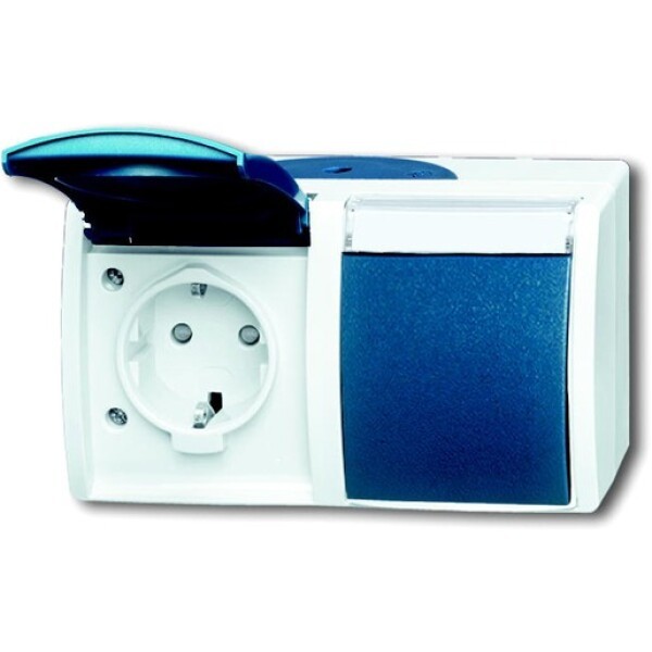Busch-Jaeger 20/2 EBW-53. Socket type: CEE 7/3, Number of poles: 2P+E. Product colour: Blue, White, International Protection (IP) code: IP44. Rated voltage: 250 V, Rated current: 16 A. Width: 145 mm, Depth: 55 mm, Height: 83 mm