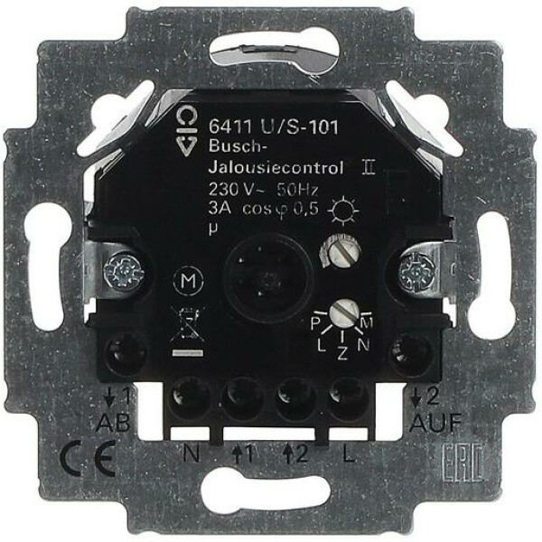 BUSCH JAEGER 6411 U/S-101 - Blind/shutter actuator - Flush-mounted - 2 channels - Black,Metallic - 6411 U - CE - Jalousiecontrol-Einsatz 2Schliesser 3A 690VA 6411 U/S-101