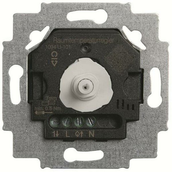 Der elektronische Raumtemperaturregler-Einsatz mit Drehregler ist für die Steuerung von Warmwasserheizungen in Verbindung mit stromlos geschlossenen Stellventilen vorgesehen. Er verfügt über einen potentialgebundenen Schließerkontakt, der bei Erreichen der eingestellten Temperatur öffnet. Ein separater Anschluss ermöglicht eine zeitgesteuerte Umschaltung auf den ECO-Betrieb, welcher die Temperatur um 3 K absenkt. Der Einstellbereich beginnt bei 5 °C. Die Montage des Reglers erfolgt in handelsüblichen Unterputzdosen nach DIN 49073 und erfordert keine Spreizbefestigung.
