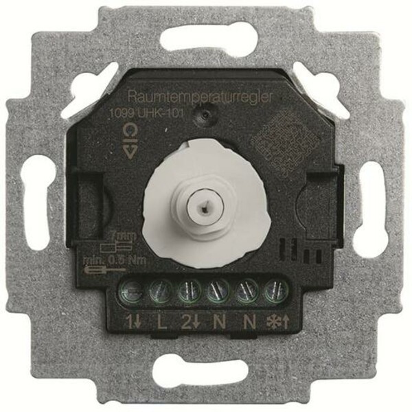 Der elektronische Raumtemperaturregler-Einsatz mit Drehregler dient der präzisen Steuerung von Heiz- und Kühlsystemen. Er ist mit zwei potentialgebundenen Schließerkontakten ausgestattet, die bei Erreichen der eingestellten Solltemperatur öffnen. Die Umschaltung zwischen dem Heiz- und Kühlbetrieb erfolgt über einen externen 230 V Eingang. Für den Betrieb werden Stellventile in der Ausführung „stromlos geschlossen“ benötigt. Der Regler ist für die Montage in Unterputzdosen gemäß DIN 49073 konzipiert und wird ohne Spreize befestigt. Der Messbereich beginnt bei 5 °C. Um eine optimale Schaltgenauigkeit zu gewährleisten, benötigt das Gerät eine Betriebsdauer von ein bis zwei Stunden. Im Kühlbetrieb ist bei hoher Luftfeuchtigkeit auf mögliche Kondenswasserbildung zu achten, um Feuchtigkeitsschäden zu vermeiden.