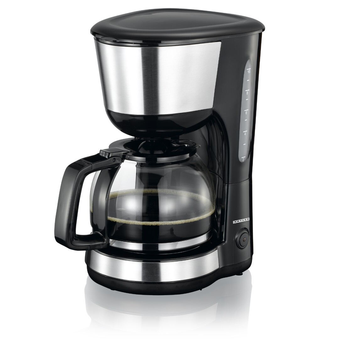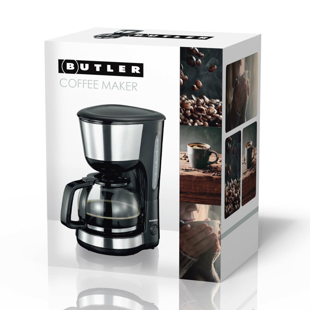 Die Butler-Kaffeemaschine bietet zuverlässige Leistung und täglichen Komfort für Kaffeeliebhaber, die sowohl Wert auf Funktion als auch auf Design legen. Mit ihren klaren Linien und Details aus Edelstahl fügt sich diese Kaffeemaschine nahtlos in moderne und klassische Küchen ein und ist damit eine praktische und stilvolle Ergänzung für Ihre Arbeitsfläche.Die Butler-Kaffeemaschine wird von einem 1000-Watt-Heizsystem angetrieben und brüht den Kaffee effizient auf, wobei sie eine gleichmäßige Temperatur und Geschmacksextraktion gewährleistet. Ganz gleich, ob Sie Ihre erste Tasse am Morgen zubereiten oder Gäste bewirten, Sie können sich jedes Mal auf einen reibungslosen und ausgewogenen Brühvorgang verlassen.Mit dem großzügigen 1,25-Liter-Wassertank können Sie bis zu 10 Tassen Kaffee in einem Durchgang zubereiten - ideal für Familien, Büros oder gesellige Runden. Eine deutlich sichtbare Wasserstandsanzeige hilft Ihnen, den Tank genau zu befüllen, damit Sie immer die richtige Menge brühen können, ohne zu raten.Für noch mehr Komfort sorgt die Tropfstopp-Funktion, die ein Verschütten des Kaffees verhindert und es Ihnen ermöglicht, eine Tasse Kaffee auszugießen, auch wenn der Brühvorgang noch nicht abgeschlossen ist. Diese Funktion ist ideal für hektische Morgen, wenn Sie nicht warten möchten, bis der gesamte Zyklus beendet ist.Die Butler-Kaffeemaschine wird mit einem wiederverwendbaren Nylon-Kaffeefilter geliefert, der den Bedarf an Wegwerffiltern aus Papier reduziert. Das macht den täglichen Gebrauch sparsamer und umweltfreundlicher und liefert dennoch hervorragende Brühergebnisse.Damit Ihr Kaffee die ideale Serviertemperatur hat, verfügt das Gerät über eine 40-minütige Warmhaltefunktion. Nach dieser Zeit schaltet sich die Kaffeemaschine automatisch ab, was für zusätzliche Sicherheit und Energieeffizienz sorgt. Der einfache Ein/Aus-Schalter mit Kontrollleuchte bietet eine klare Bedienung und sofortige Rückmeldung, so dass Sie immer wissen, wann das Gerät in Betrieb ist.Die Butler-Kaffeemaschine ist eine zuverlässige Wahl für den täglichen Kaffeegenuss, da sie effiziente Brühleistung, praktische Funktionen und ein zeitloses Design vereint.