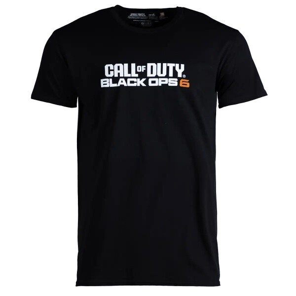 - Das schwarze T-Shirt in Größe L zeigt das Logo von Call of Duty: Black Ops 6