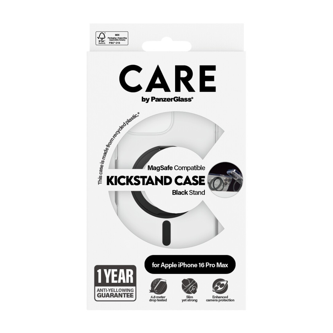 PanzerGlass CARE by ® Feature Case Transparent m. Schwarz Kickstand & MagSafe iPhone 16 Pro Max, Cover, Apple, Apple - iPhone 16 Pro Max, Schwarz