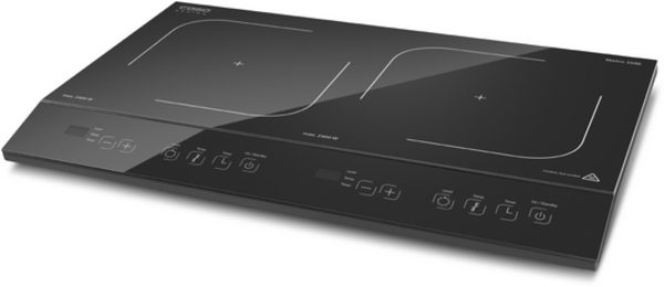 Mobiles Induktionskochfeld zweifach, mit großer Digitalanzeige, ist schnell und energiesparend. Durch eine größere Induktionsspüle und gleichmäßige Energieverteilung wird optimale Hitzeverteilung gewähleistet. Die beiden Kochfelder teilen sich über das PowerSharing 3500 Watt. Nutzen Sie nur eine Kochplatte, hat diese max. 2100 Watt. Schalten Sie die zweite Platte hinzu, werden 3500 Watt Leistung auf beide Kochfelder verteilt. 12 Temperaturstufen und 12 Leistungsstufen können präzise und leicht, dank der Sensor-Touch Bedienung eingestellt werden. Automatische Topferkennung, Sicherheitsschalter zum Schutz vor Überhitzung und Timerfunktion machen die Anwendung sicher.