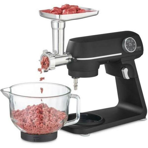 Fleischwolf, die perfekte Ergänzung zur Küchenmaschine KM 1800 Black, z.B. für die Herstellung von Frikadellen und Burger Patties. Fleisch im Fleischwolf‐Vorsatz zerkleinern und anschließend direkt in der KM 1800 weiterverarbeiten. Leichte Montage des Fleischwolf‐Vorsatzes am Motorkopf der Küchenmaschine. 4‐fache Edelstahlklinge für ein problemloses, schnelles Zerkleinern von rohem und gegartem Fleisch, Fisch und Gemüse. 3 Edelstahl‐Lochscheiben in fein, medium und grob, Edelstahl‐ bzw. Glasschüssel der Küchenmaschine kann als Auffangbehälter genutzt werden und erleichtert eine anschließende Weiterverarbeitung in der KM 1800 Black. Inklusive Edelstahl‐Wurstvorsätze für die Herstellung von selbstgemachten Würstchen in 3 verschiedenen Größen (spülmaschinengeeignet). Praktischer 2 in 1 Stopfer: für eine sichere Anwendung und für die Verstauung der Wurstvorsätze. Großes Einfülltablett ermöglicht die Verarbeitung größerer Mengen.