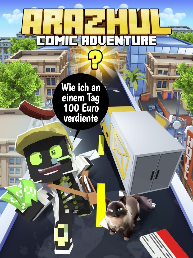 Arazhul schafft es immer wieder: Er macht aus treuen Zuschauer*innen begeisterte Leser*innen. In seiner jungen Com-munity ist die ComicAdventureReihe bisher auf überwältigende Resonanz gestoßen. Nun erscheint der 8. Band des DeinSPIEGELBestsellerautors. Darum gehts: 100 Euro so viel soll das neue Spielzeug kosten, in das sich Arazhul verliebt hat. Aber wie soll er das bezahlen? Da können ihm auch seine Freund*innen nicht helfen oder doch? Angetrieben von seinem Wunsch nehmen Arazhul & Co. einen Tag lang jeden Job an, den sie kriegen können ob Gassi gehen mit Katzen oder das Austragen der Post. Da ist Chaos vorprogrammiert.