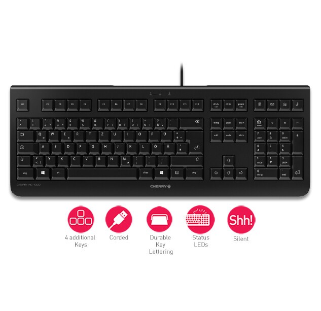 CHERRY KC 1000 is rock-solid CHERRY technology with an excellent price/performance ratio. Modern, flat design with gentle, quiet and durable abrasion-resistant keys. Universal, reliable and optimized for professional use.