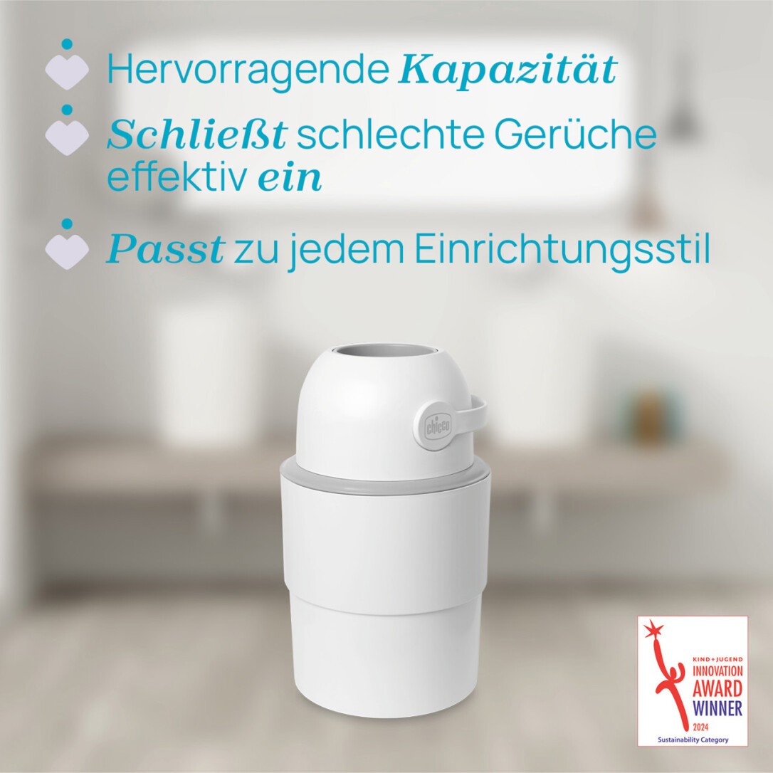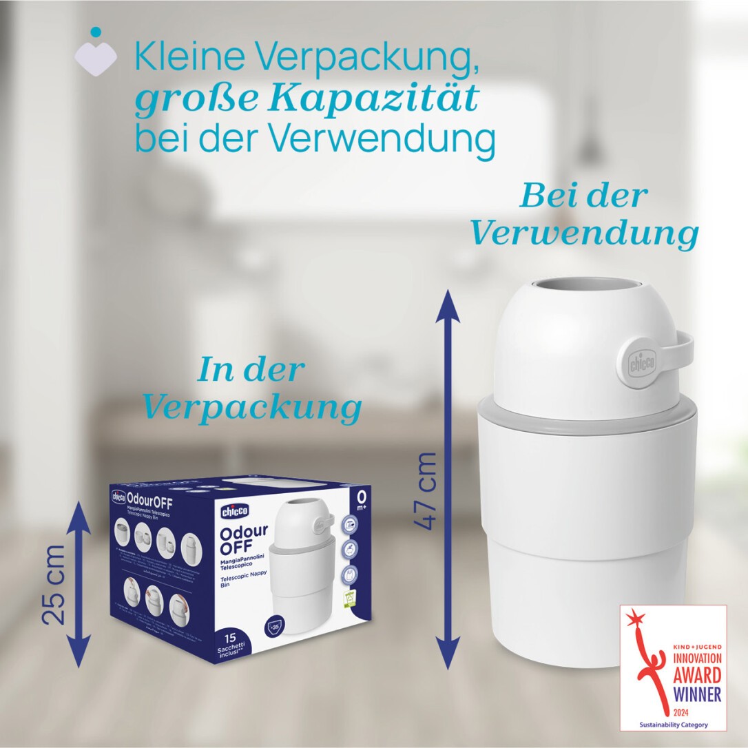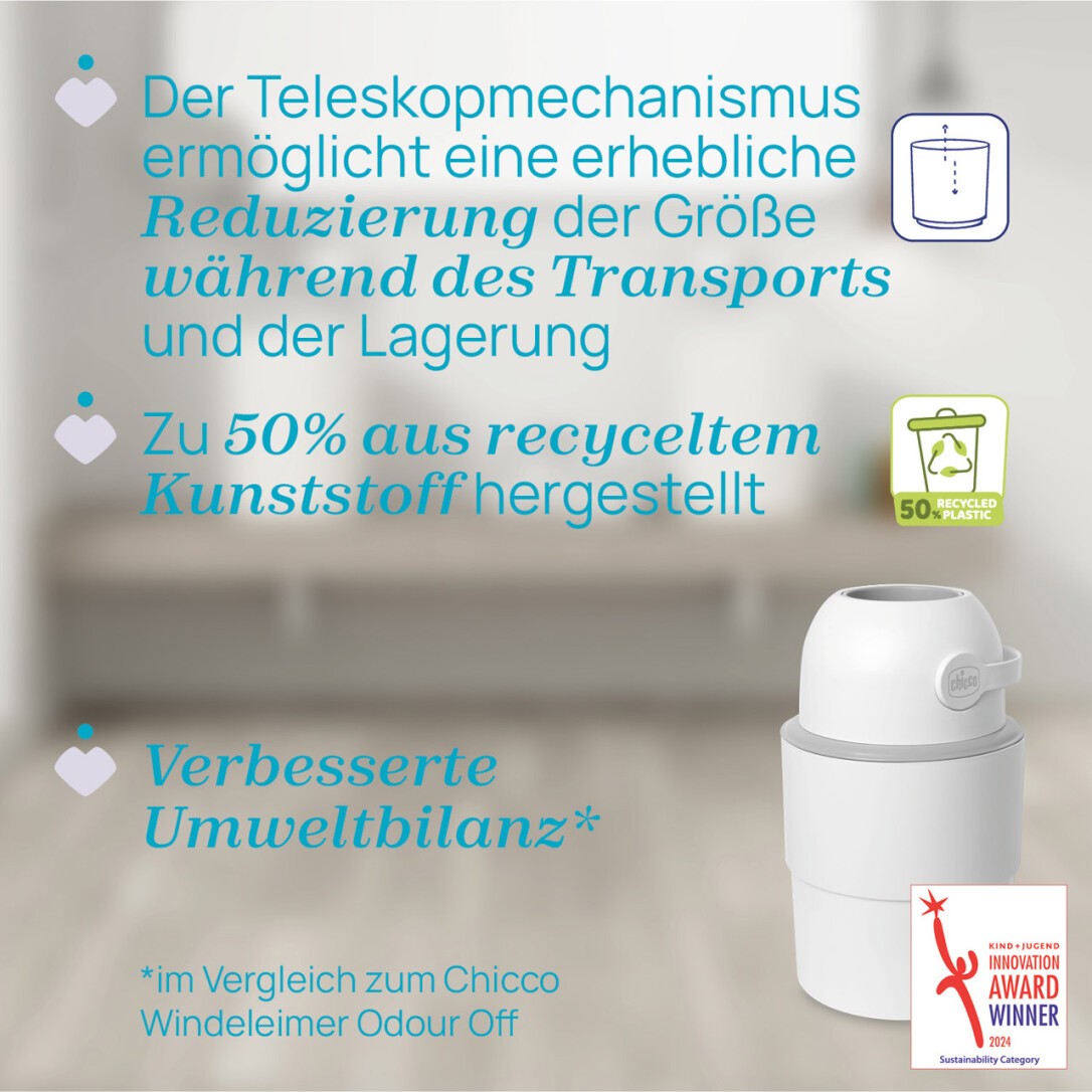 CHICCO Teleskop Windeleimer Odour Off weiss inkl. 1 Pck. Muellbeutel Odour Off