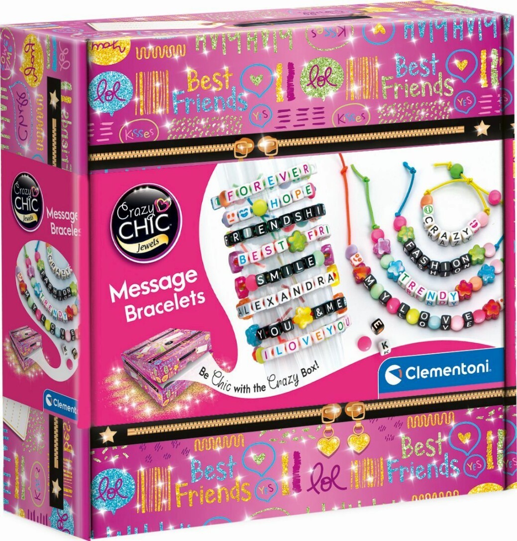 Armbänder in leuchtenden, lebendigen Farben, mit denen man den Namen, Lieblingsworte oder Botschaften schreiben kann und die einen einzigartigen Ausdruck von Kreativität und Stil ermöglichen. Das Spielset enthält verschiedene Alphabete: in Schwarz-Weiß, mit Buchstaben in Silber und farbigen Buchstaben auf weißem Hintergrund. Die Farbauswahl der Bestandteile wurde sorgfältig anhand der aktuellen Modetrends ausgewählt, um kleine Mädchen zu begeistern. Die Packung kann als Behälter für die Aufbewahrung der Kreationen unbenutzte Perlen verwendet werden. So wird sichergestellt, dass keine Perlen verloren gehen und die Kreationen überall sicher verwahrt werden können. Dieses Spielset regt kleine Mädchen dazu an, kreativ und phantasievoll mit verschiedenen Kombinationen von Schmuck zu experimentieren und dabei auch Geschicklichkeit und manuelle Fertigkeiten zu entwickeln.