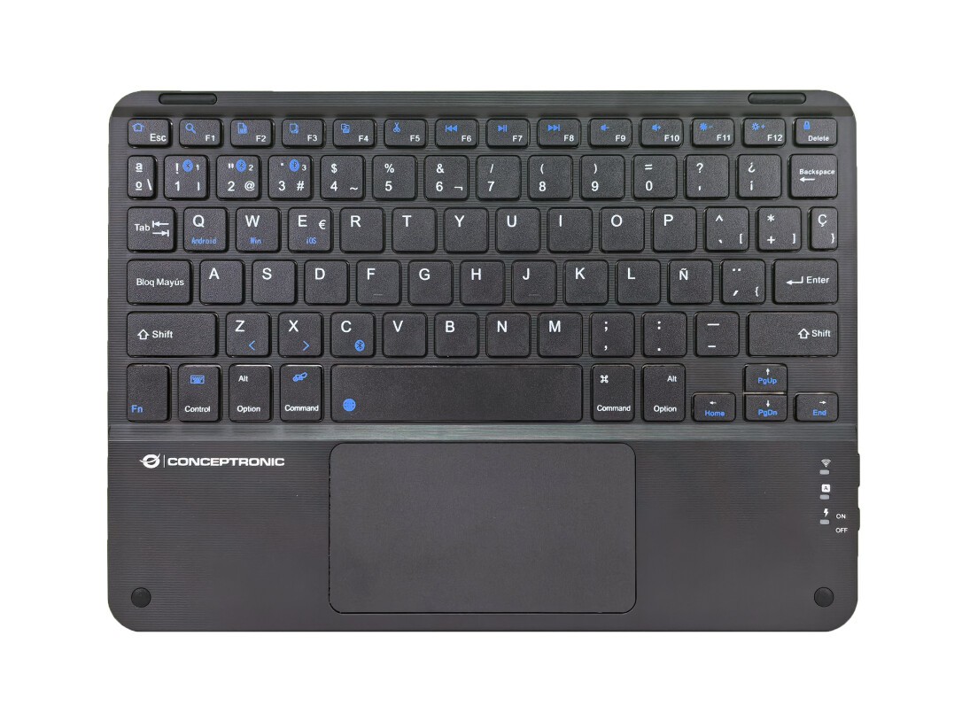 Conceptronic TOBIN01BES 10-Zoll-Bluetooth-Tastatur mit Touchpad, QWERTY Spanisch, Tenkeyless (80 - 87 %), Kabellos, Bluetooth, QWERTY, Schwarz