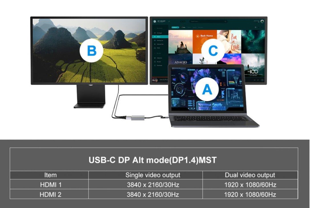 Multi Stream Transport oder MST ist eine Möglichkeit, einen oder mehrere Monitore über einen einzelnen DisplayPort zu verbinden. Diese Technologie ermöglicht bspw. über eine Dockingstation die Verbindung von zwei Monitoren mit einem Laptop. Dies funktioniert, indem mehrere Videosignale in einem einzigen Stream kombiniert und dann auf der Display-Seite wieder „ausgepackt“ werden. MST funktioniert an jedem Windows-Gerät, das DP Alt Mode (DisplayPort Alternate Mode) über USB-C unterstützt.