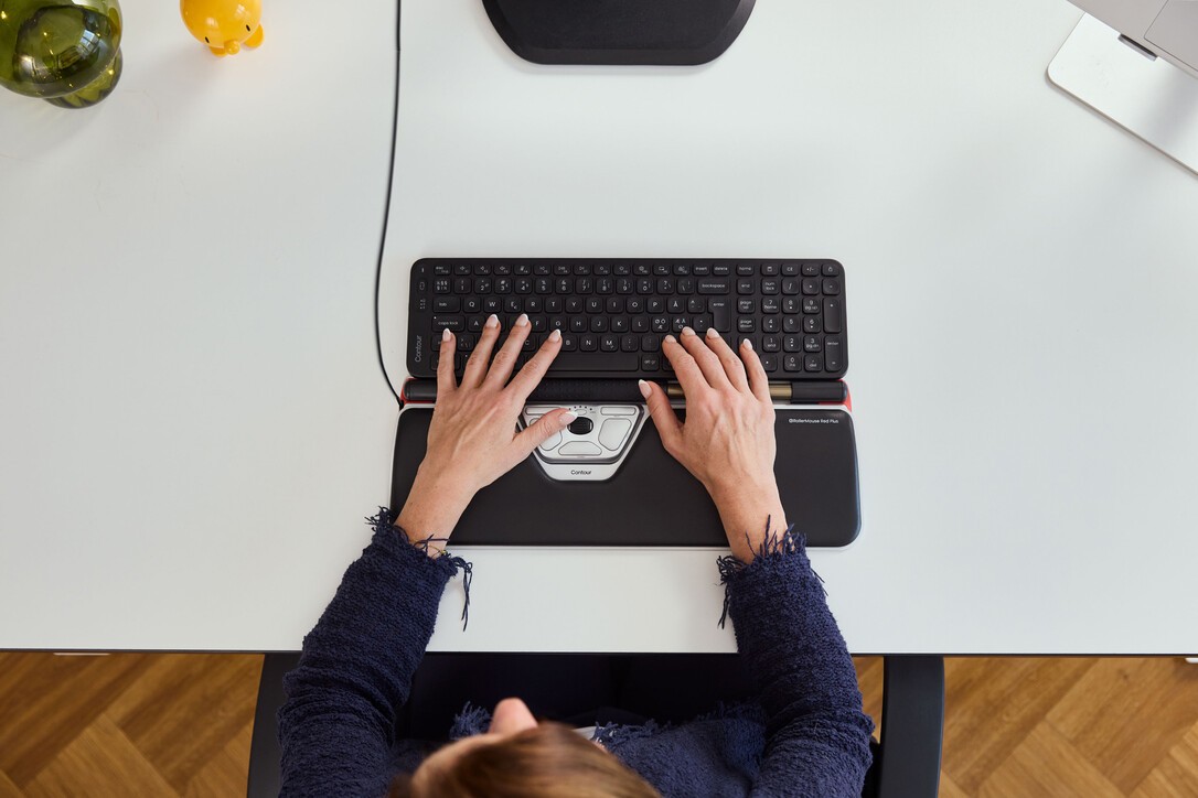 Contour Design RollerMouse Red Plus, Thin Client, Wired - zentriertes Zeigegerät - ergonomisch - für Rechts- und Linkshänder - kabelgebunden - USB-C, Beidhändig, Optisch, USB Typ-C, 2800 DPI, Schwarz, Silber