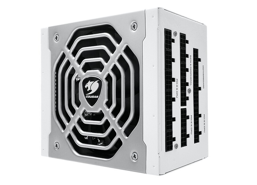 COUGAR Netzteil Polar 1050W ATX3.1 / 80 Plus Platinum / Modular. Gesamtleistung: 1050 W, AC Eingangsspannung: 100 - 240 V, AC Eingangsfrequenz: 47 - 63 Hz. Motherboard Anschlussstecker: 20+4 pin ATX, Stromkabellänge Motherboard: 65 cm, SATA-Netzkabellänge: 120,500 mm. Zweck: PC, Stromversorgungseinheit (PSU) Formfaktor: ATX, 80 Plus Zertifizierung: 80 PLUS Platinum. Produktfarbe: Silber, Kühlung: Aktiv, Lüfterdurchmesser: 13,5 cm. Konformitätsbescheinigungen: CCC, CE, EAC, Eidgenössische Kommunikationskommission (FCC), RoHS, TÜV mark