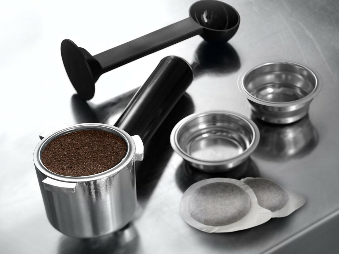 - Für gemahlenen Kaffee oder E.S.E. Pads