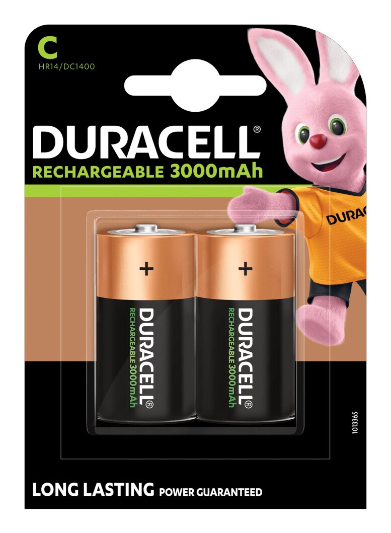 Duracell 055988. Battery type: Rechargeable battery, Battery technology: Nickel-Metal Hydride (NiMH), Battery voltage: 1.2 V. Width: 26 mm, Depth: 26 mm, Height: 50 mm. Cylindrical battery size: C