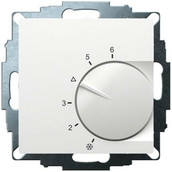 Elektromechanischer Unterputz-Raumtemperaturregler zur Regelung oder Überwachung von Temperaturen in Wohnräumen, Büros und Hotels. Passend in alle gängigen Schalterprogramme. Aktivweiß glänzend, 55x55 Abdeckung mit Knopf. Geeignet für wassergeführte und elektrische Heizsysteme. Durch die thermische Rückführung wird eine sehr kleine Schaltdifferenz erreicht. Einstellbare Bereichseinengung im Einstellknopf als Heizkostenbremse. Eine unverlierbare Schraube mit Gewindeeinsatz zur Befestigung des Gehäusedeckels sowie praktische Steckklemmen erleichtert die Montage. Montage in 55er UP-Dose.