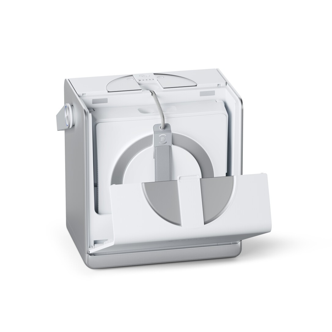 Die Dockingstation bietet ein zusätzliches Staufach für den WINBOT und sein Reinigungszubehör. Außerdem ist er mit einem Griff zum einfachen Tragen ausgestattet.