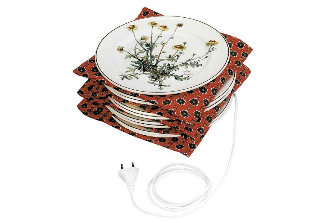 Teller-Vorwärmer mit Thermostat, 75 Watt, faltbar, für 4-12 Teller, verpackt in einem wiederverschließ- baren Kuststoffbeutel