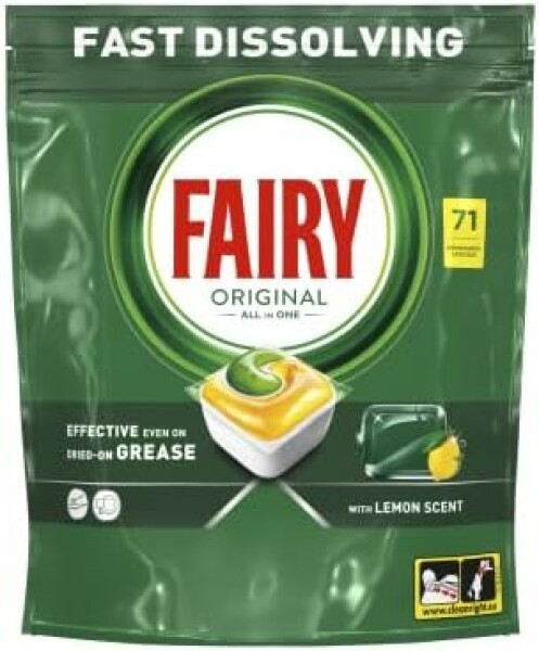 Fairy Original All in One Spülmaschinentabs bieten erstklassige Reinigungswirkung bereits beim ersten Spülgang und wirken selbst bei eingetrocknetem Fett - für strahlend sauberes Geschirr. Fairy kombiniert Flüssig- und Pulver-Spülmittel in einem leistungsstarken Tab. Der Tab löst sich schnell auf und fängt dadurch direkt an, seine Reinigungskraft zu entfalten. Zudem sind die Tabs sehr einfach zu verwenden. Sie brauchen nicht ausgepackt zu werden, sondern können einfach in die Dosierkammer gelegt werden.