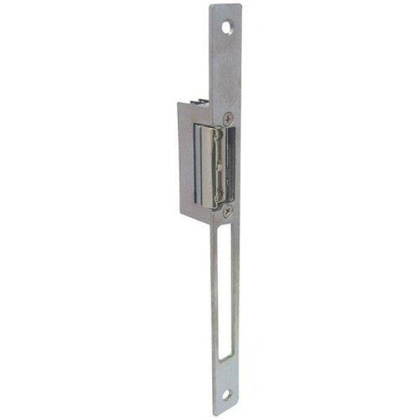 Türöffner mit verstellbarer Falle, Radiusfalle, Symmetrische Bauart. Temperaturbereich: -40 bis 120°C, Aufbruchsfestigkeit: 300 kg, Geprüfte Lastzyklen im Werk: 200000, Größe: BxHxT: 16,4x67x28mm, und mit Schließblech Type L22 mit folgenden Spezifikationen: Größe: BxHxT: 22x250x2,5mm (410ND-412-L22 MAX).