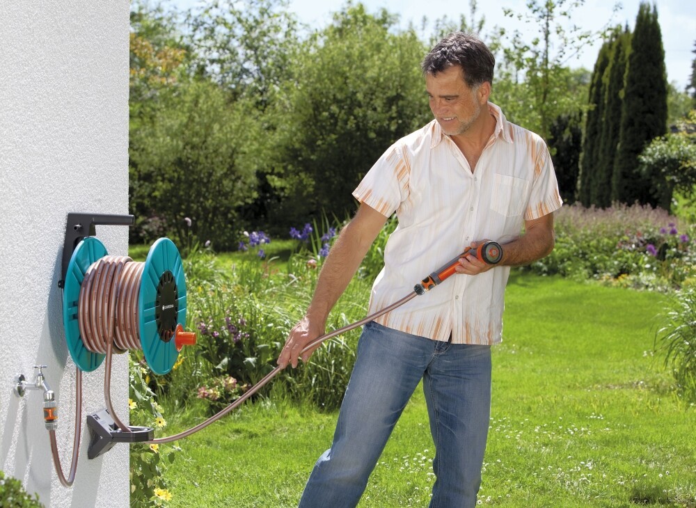 Through the wall mounting of the Hose Reel, the hose can be wound from an upright position, thereby sparing your back.