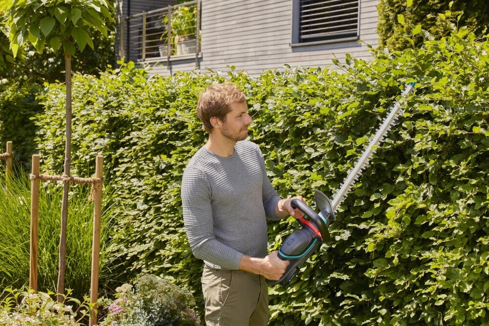 Cordless, convenient, lightweight and easy to use: With the GARDENA Battery Hedge Trimmer ComfortCut 60/18V P4A, you can trim medium-sized hedges without much effort at all. The battery provided has a run time of up to 56 minutes or up to 188 square metres of hedge. Thanks to a clearly visible LED indicator directly on the tool, you are always aware of the current charge level. So you’ll know when it is time to take a break to either charge it or connect another battery. With its ErgoLine handle with integrated switch, the shears with a blade length of 60 centimetres always fit comfortably in your hand, no matter what position you are working in. When cutting close to the ground or along walls, the impact protection at the tip of the blade ensures that the blades are not damaged. The blade geometry is perfectly designed so that the cut is always clean and the work is easy to perform – without interruptions. We know you’ll be impressed with the results! With the ComfortCut, hedge trimming is no longer a tiresome, strenuous chore, but one that can be completed in no time at all. The GARDENA Battery Hedge Trimmer ComfortCut 60/18V P4A is supplied as a Ready-To-Use Set with a charger and a 18V POWER FOR ALL battery. The POWER FOR ALL ALLIANCE is one of the largest cross-brand battery alliances of leading manufacturers. The battery is therefore compatible with numerous other tools around the home and garden – which means that you no longer need to buy one for every product. You save money and stay flexible at all times! Passion powered by GARDENA – Battery garden equipment that gives you the freedom to create.