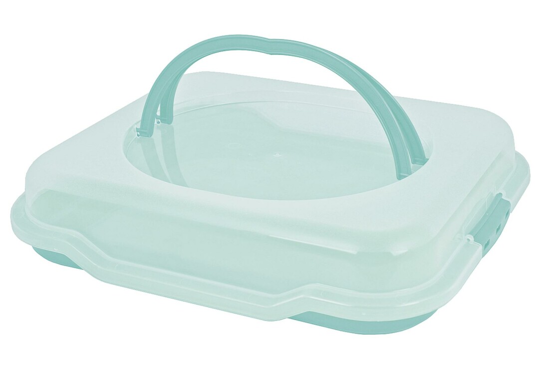 Gies Transportbehälter "Party-Butler" aus Kunststoff, ideal für Kuchen, Brote, Brötchen, Pizzen etc. Farbe: helltürkis. Maße: (LxBxH): 46x38,5x9,5 cm.