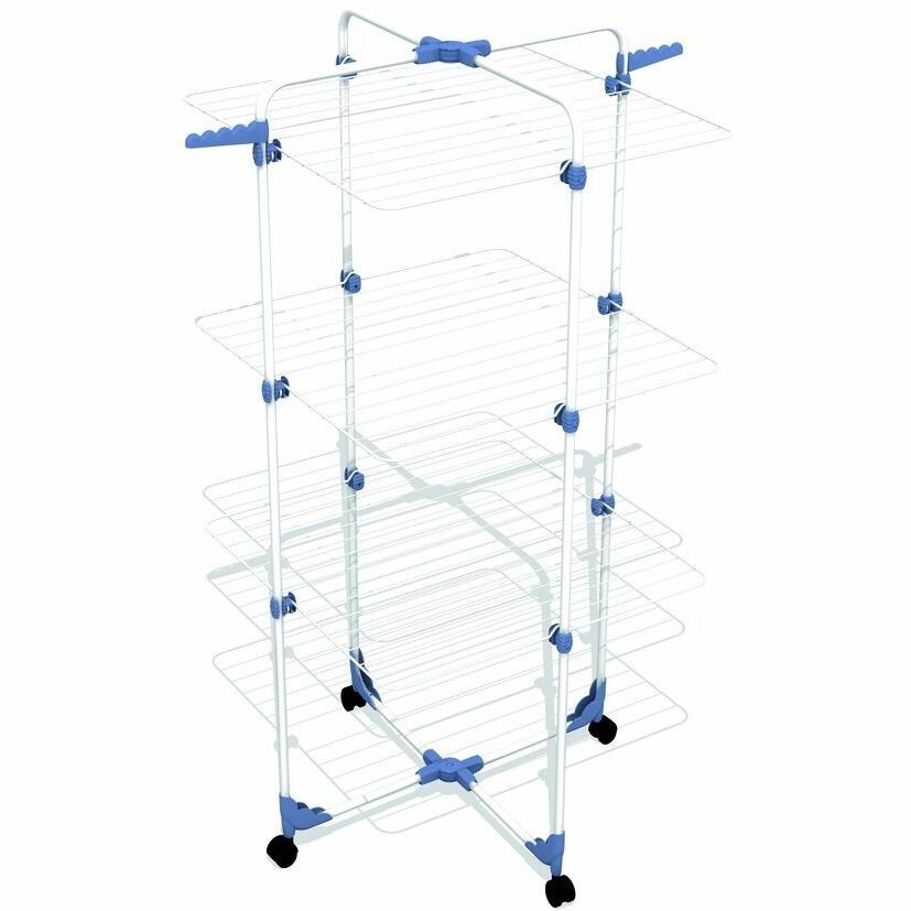 Der Turmwäschetrockner Modular 3 bietet 30 m Aufhängleine zum Wäschetrocknen. Mit den voneinander unabhängigen Gittern und einem speziellem Gelenk für den halbierten Einsatz kann der Turm-Wäscheständer der Wäsche angepasst werden. Dieser praktische Haushaltshelfer kann auch in Duschkabinen mit min. 100 cm Diagonale verwendet werden. Die Gitterhalterung ist verstärkt und die Eckteile sind mit Drehrädern und Kratzschutz ausgestattet. Für Kleiderbügel sind auf dem Turmwäschetrockner zwei Halterungen befestigt.