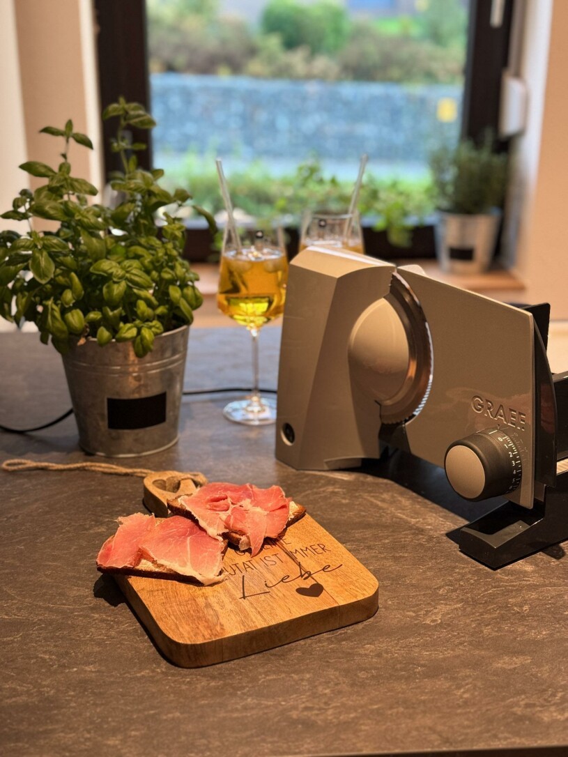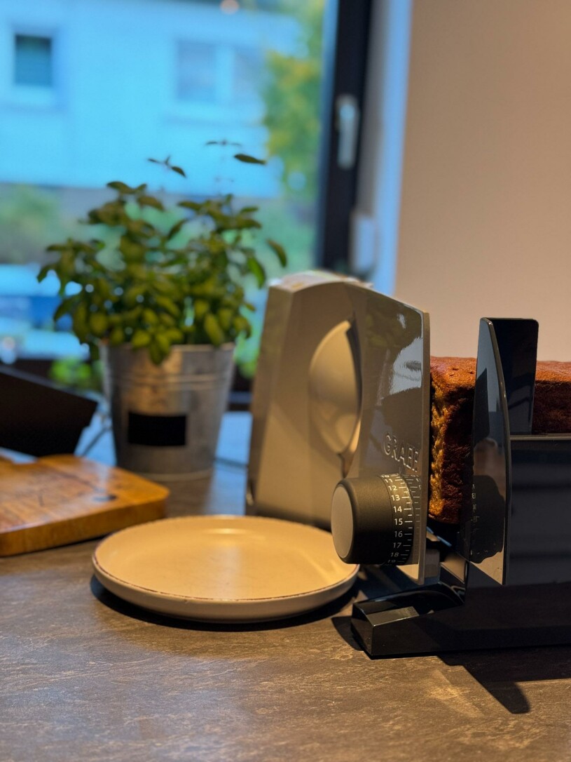 Setzen Sie den Allesschneider nur im Haushalt und nicht gewerblich ein. Stellen Sie das Gerät nie auf heiße Oberflächen oder in die Nähe offener Flammen. Verwenden Sie ausschließlich das mitgelieferte Zubehör. Verwenden Sie ausschließlich ordnungsgemäße Verlängerungskabel.
