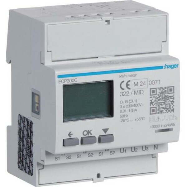 Hager Energiezähler 3phasig fürWandlerverhältnis 1A oder 5A S0 MID ECP300C