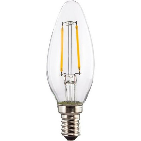 Die LED-Filament Kerzenlampe ist ein besonders energieeffizientes Leuchtmittel mit einem Stromverbrauch von nur 6 Watt, das eine herkömmliche 60-Watt-Glühlampe ersetzt. Dank der speziellen LED-Streifen bietet die Lampe eine Lichtcharakteristik, die der einer traditionellen Allgebrauchslampe entspricht. Die dekorative Kerzenform mit Vollglasgehäuse sorgt für eine ansprechende Optik, während der geringe Energieverbrauch und die geringe Wärmeentwicklung ohne UV-Strahlung die Lampe besonders umweltfreundlich machen. Die LED-Lampe ist für den Betrieb in offenen Leuchten entwickelt, um die beim Betrieb entstehende Wärme optimal abzugeben. Mit einer Lebensdauer von bis zu 15.000 Stunden und einem Lichtstrom von 806 Lumen bietet sie eine zuverlässige und langlebige Beleuchtungslösung. Die Lampe ist nicht dimmbar und hat eine Farbtemperatur von 2700 K, was ein warmweißes Licht erzeugt.