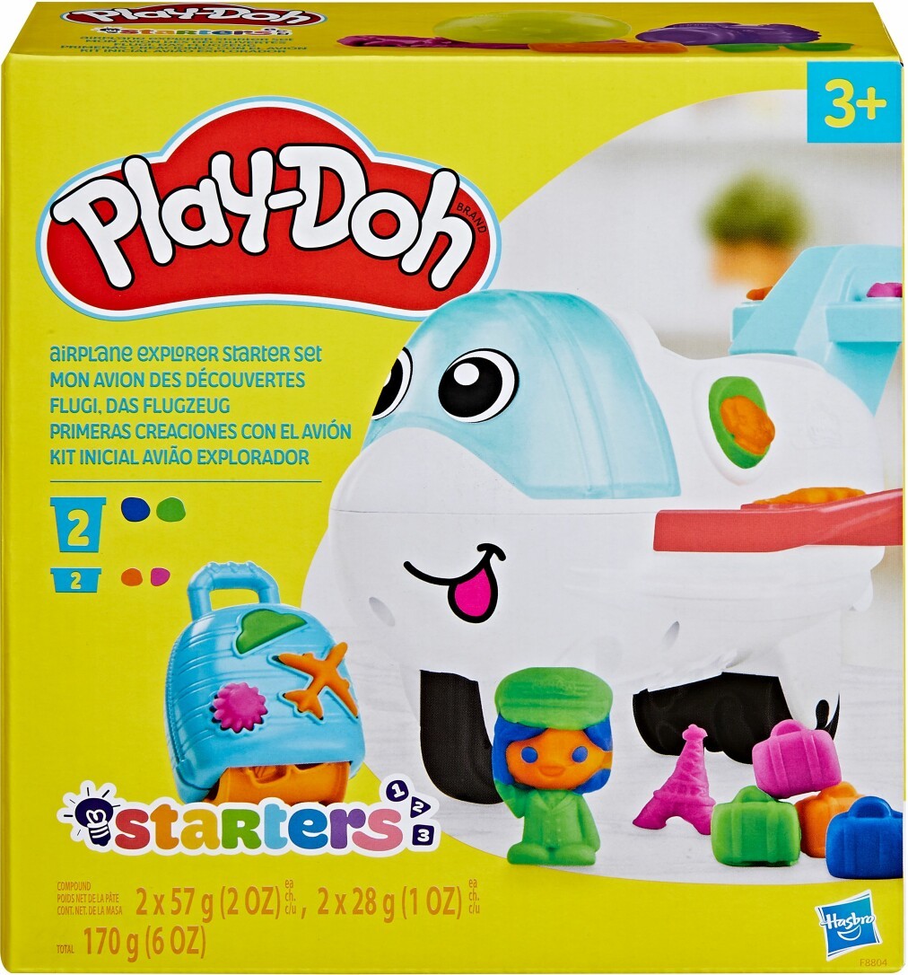 Willkommen an Bord! Mit Flugi, dem Flugzeug kann die Reise starten. Dieses Flugzeug bietet jede Menge Möglichkeiten, um mit Play-Doh zu spielen und der Fantasie bei einem Abenteuer um die Welt freien Lauf zu lassen. Hier können Kinder spielend lernen und Dinge rund ums Thema Reise und Urlaub kneten und dann den Bildern auf der Knetunterlage zuordnen. Mit Piloten und Passagieren wird das Flugzeug mit Leben erfüllt und mit 3 Play-Doh Werkzeugen und 4 verschiedenen Farben geht die Reise los. Mit Fantasie-Spielzeugen wie diesem Play-Doh Set kann das kindliche Interesse an der Welt erweckt werden, während gleichzeitig die Feinmotorik trainiert und die Kreativität gefördert wird. Wo geht die fantasievolle Reise heute hin? Hasbro, Play-Doh sowie alle dazugehörigen Merkmale sind Marken von Hasbro.