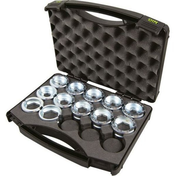 Presseinsätze-Set DIN Cu12 DIN-Presseinsätze im praktischen Transportkoffer Set enthält 216834 DIN 10, 216836 DIN 16, 216838 DIN 25, 216840 DIN 35, 216842 DIN 50, 216844 DIN 70, 216846 DIN 95, 216848 DIN 120, 216850 DIN 150, 216852 DIN 185, 216854 DIN240, 216856 DIN 300.