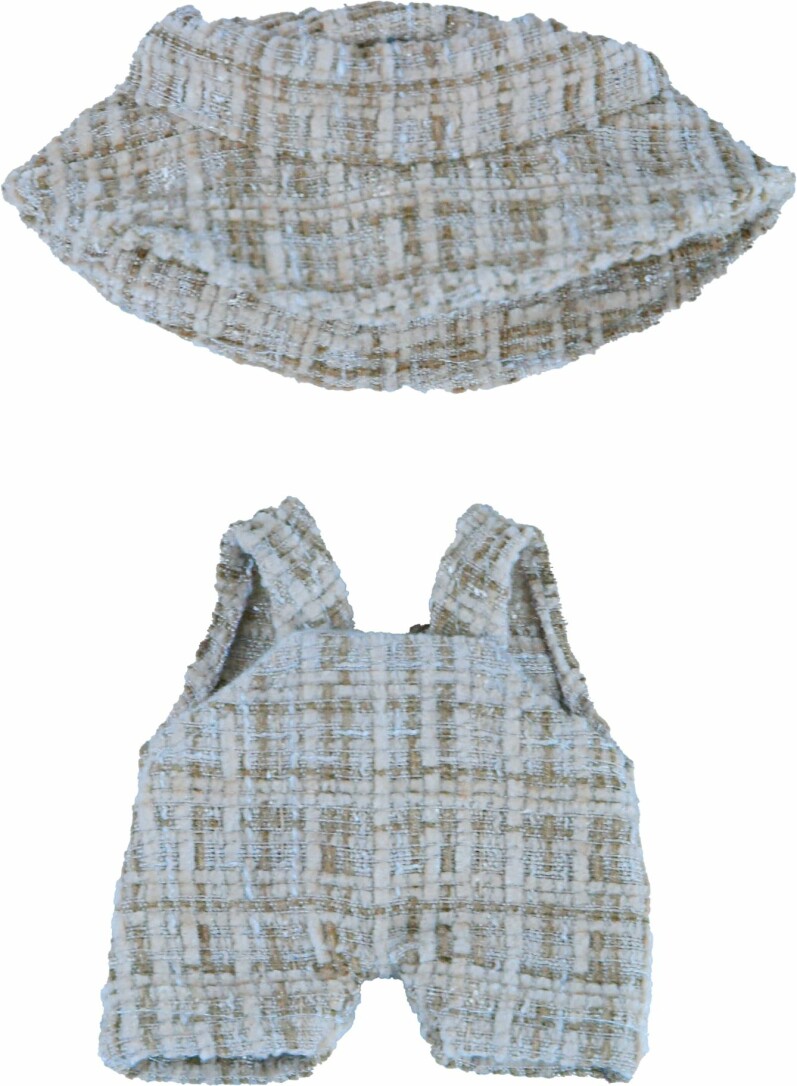 Mit dieser kuschelweichen hellblauen Bouclé-Latzhose und dem passenden Fischerhut sind kleine Monster modisch bestens ausgestattet. Die clevere Passform lässt die Öhrchen charmant durch den Hut schauen und sorgt für einen unwiderstehlich niedlichen Look. Inspiriert vom verspielten Kawaii Style bringt das Outfit noch mehr Charme in die Monster-Garderobe. Passend für Labubus, Nunos und andere 15 cm große Monster. Outfit ohne Monster.