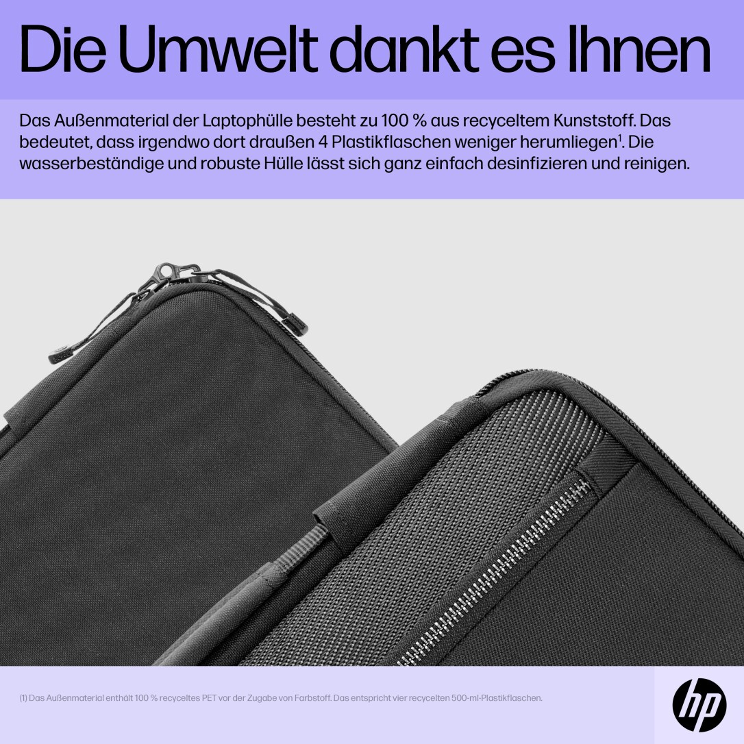 We've put an all-new spin on premium design and high quality materials. Crafted with functional style, this laptop sleeve fits your work or life needs with places and pockets for all your work essentials. Keep what's important close to you and keep your commitment to the planet with the external material containing 100% recycled plastics[1].