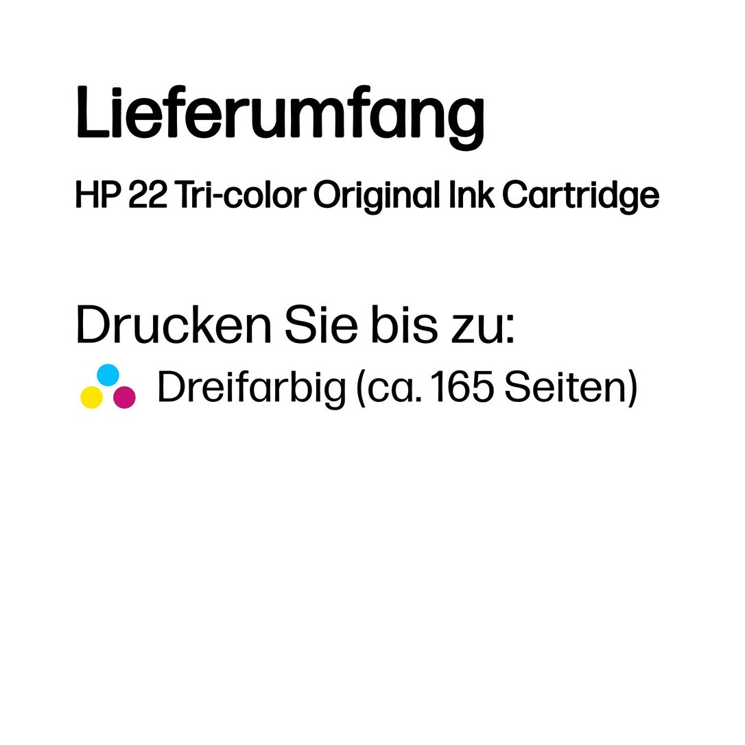 HP 22 Cyan/Magenta/Gelb Original Druckerpatrone, Cyan, Magenta, Gelb, 1 Stück(e), 165 Seiten