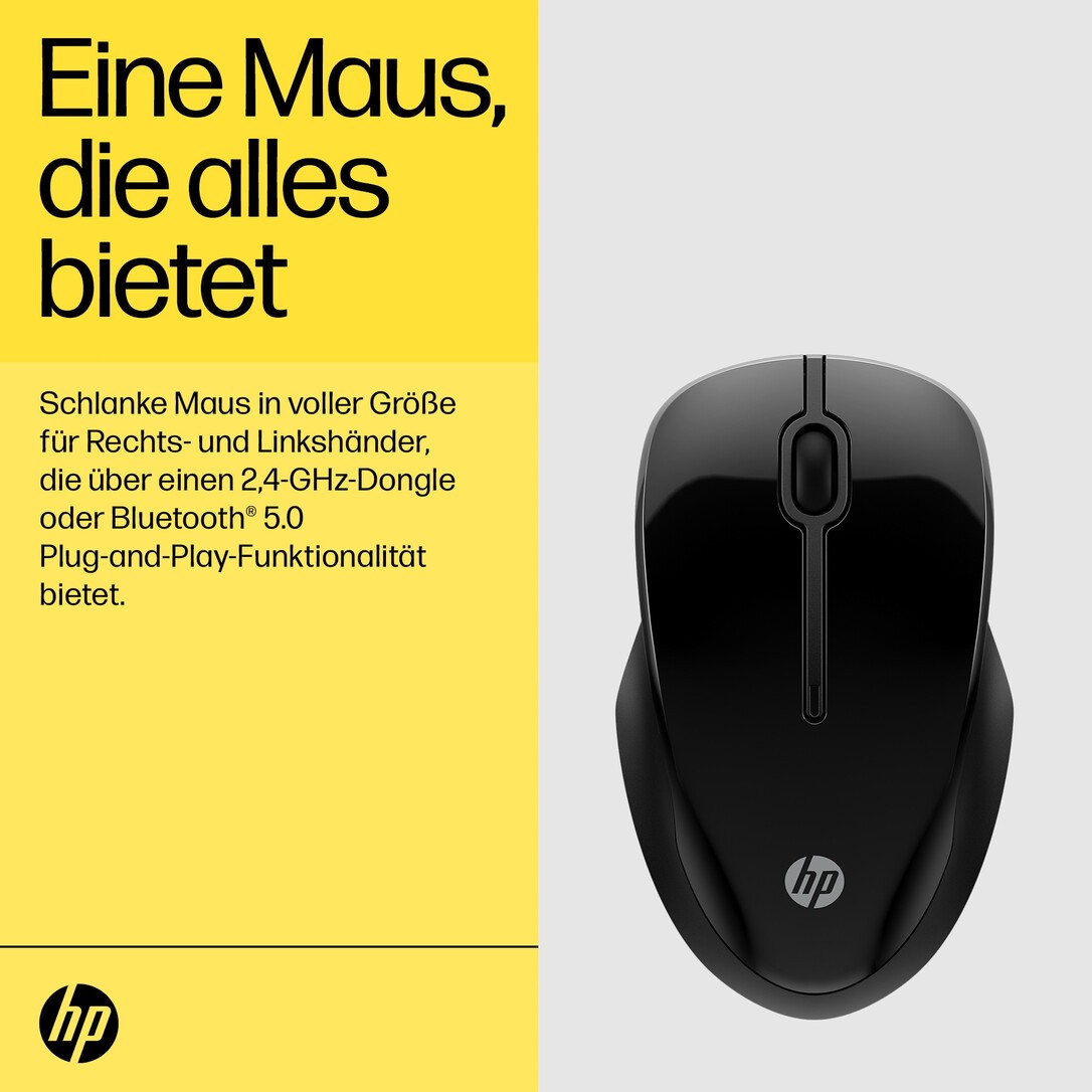 HP 250 Dual-Maus, Beidhändig, Bluetooth + USB Type-A, 1600 DPI, Schwarz