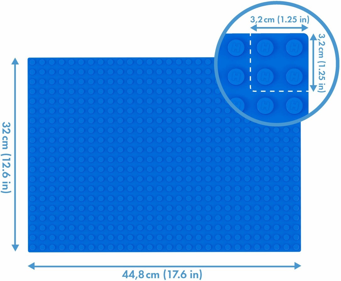 Die 32 x 44,8 cm große Grundplatte mit 560 Noppen ist die ideale Basis für Baumeister mit richtig großen Vorhaben. Die robuste Grundplatte hat abgerundete Ecken und ist daher besonders sicher. Ab 18 Monaten.