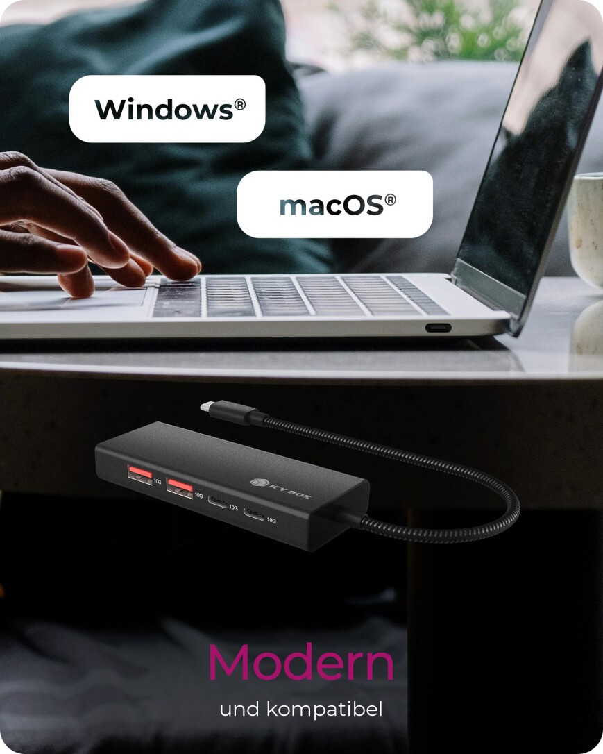 ICY BOX IB-HUB1436-CPD 4-Port USB 3.2 Gen 2 Hub Datenverteiler/Umschalter