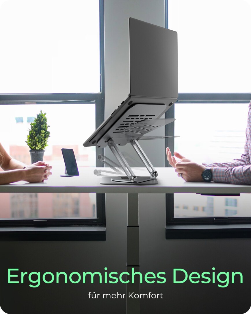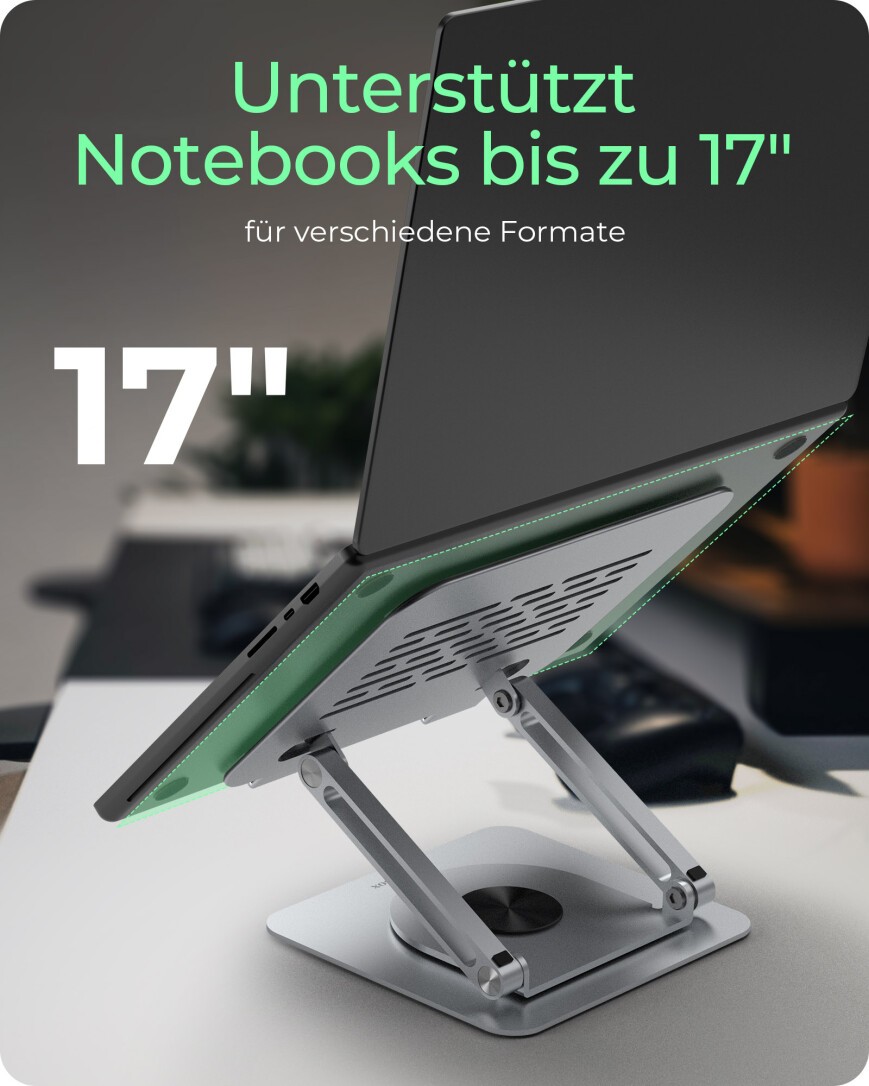 ICY BOX IB-NH300-R, Notebookhalter, rotierend, höhenverstellbar, Aluminium, für Notebooks bis 17" (43 cm), Laptop-Ständer, Silber, Aluminium, 43,2 cm (17"), 3,5 kg, 360°