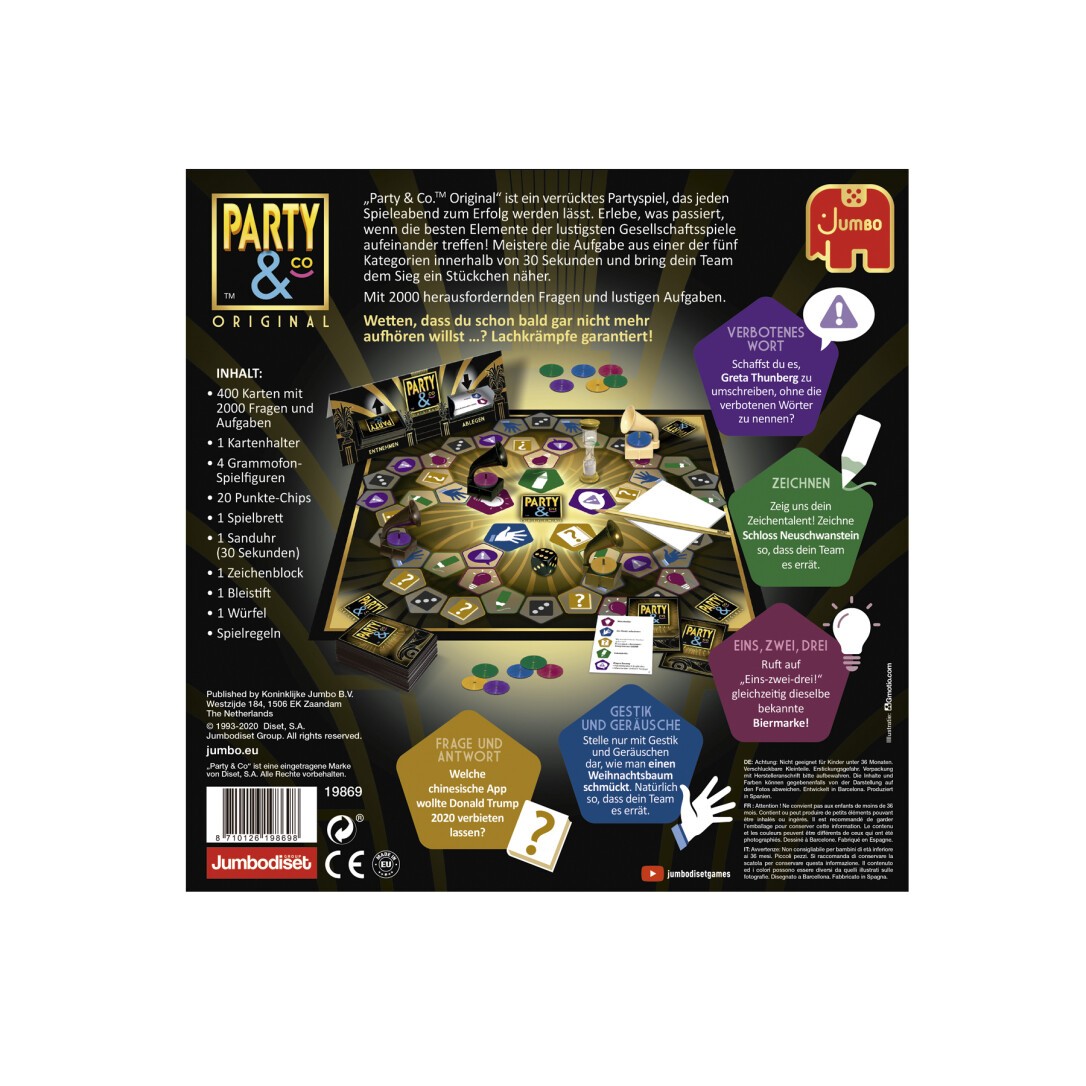 Party und Co Original ist ein verrücktes Partyspiel, das jeden Spieleabend zum Erfolg werden lässt! Es erscheint zum 30-jährigen Jubiläum in einem neuen Design! Die besten Elemente der lustigsten Gesellschaftsspiele werden in diesem Spiel kombiniert. Ab 14 Jahren für 3 - 20 Spieler.