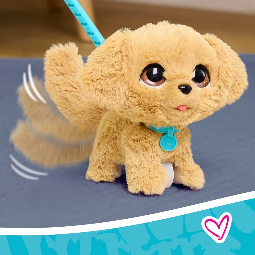 Ein wedelnder Hund macht Kinder glücklich besonders wenn dieser Vierbeiner das interaktive Spielzeug furReal Wag-A-Lots Golden Retriever ist. Dieses fantastische Plüschtier ist nicht nur ein liebenswerter Begleiter, sondern auch ein tolles Spielzeug, um Kinder für die Pflege von Haustieren zu begeistern. Befestige die mitgelieferte Leine am Halsband des Welpen. Führe ihn dann mit einer sanften Bewegung nach vorn im Haus spazieren, um zu sehen, wie sein Schwanz hin und her wedelt. Sein hüpfender Gang und wackelnder Kopf erinnern an echte Haustiere. Dieses bezaubernde, 20,3 cm große Kinderspielzeug gibt fröhliches Jaulen, Bellen und Soundeffekte von sich, während es in Bewegung ist. Nach dem Spaziergang können die Kinder mit ihrem Welpen kuscheln, ihn streicheln und pflegen. Dieser Golden Retriever ist eine süße Bereicherung für jede Sammlung von Stofftieren und furReal-Haustieren (alle einzeln erhältlich). Benötigt 2 AAA-Batterien (im Lieferumfang enthalten). Dieser wunderbare Welpe ist mit Sicherheit ein beliebtes Geburtstags- oder Weihnachtsgeschenk oder eine Überraschung für Kinder ab 4 Jahren.