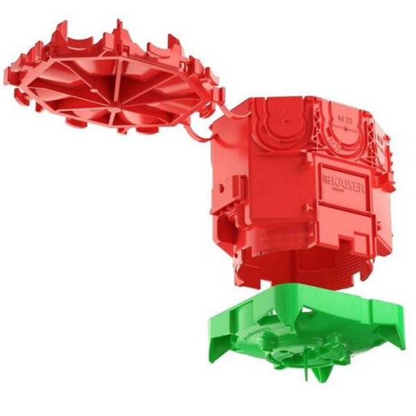 Dosen-Rückteil mit Aufnahme für Leuchtenhaken nach DIN EN 60670 (50 N). 2-teilig mit angespritztem Rückteil, für alle Schalungsarten geeignet. Verwendbare Leuchtenhaken: 100 mm / A1225-10, 120 mm / A1225-12, 140 mm / A1225-14. Länge x Breite x Tiefe 94 x 75 x 95 mm.