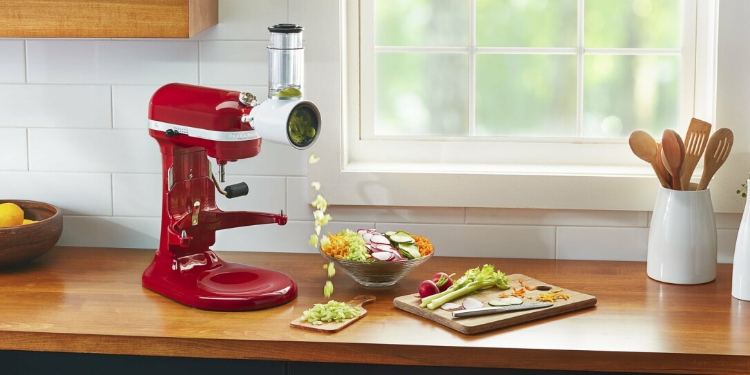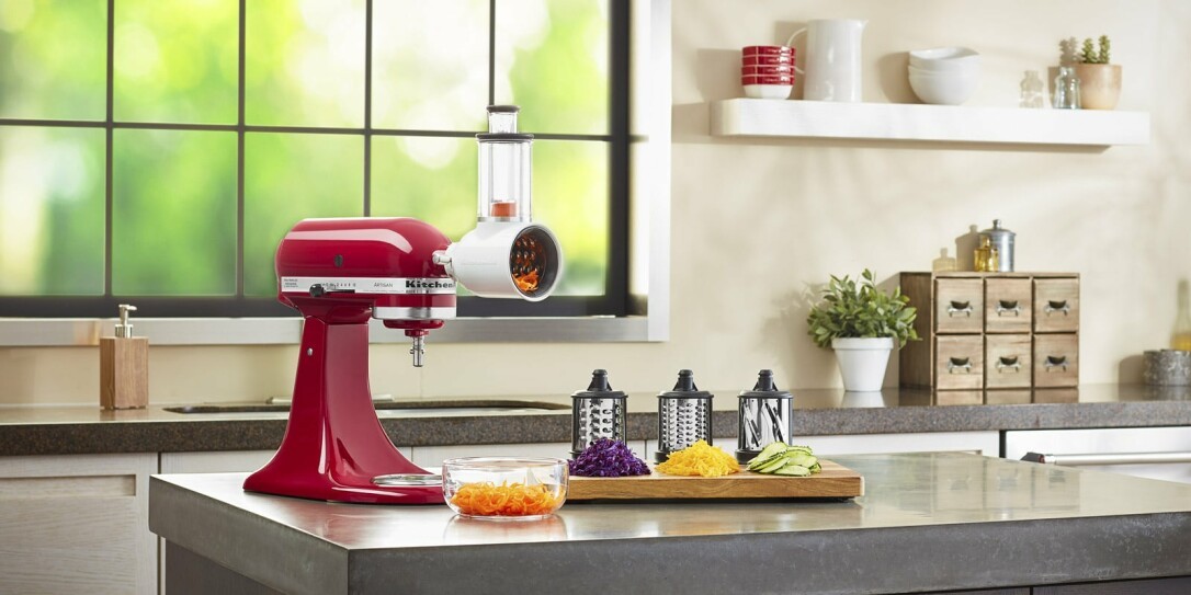 KitchenAid 5KSMVSA. Product type: Food grinder, Product colour: Black, Transparent, White, Housing material: Stainless steel. Width: 102 mm, Depth: 208 mm, Height: 203 mm. Package weight: 1.6 kg, Package width: 312 mm, Package depth: 128 mm. Quantity per pack: 1 pair(s)